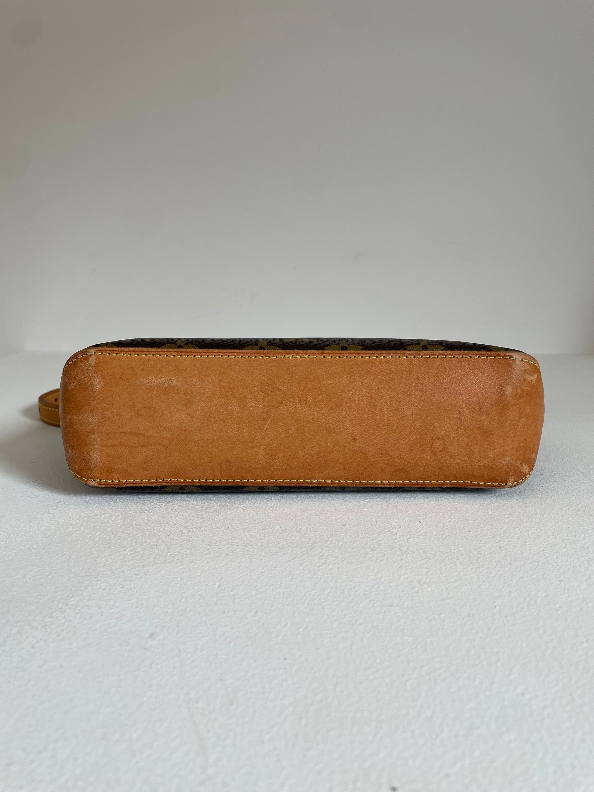Le cuir vachette (le dessous du sac) montre une légère patine naturelle, un peu plus appuyé sur son bord (voir images) typique des sacs Monogram d’époque (et qui leur donne tout leur charme vintage ✨).